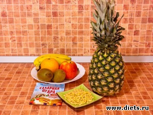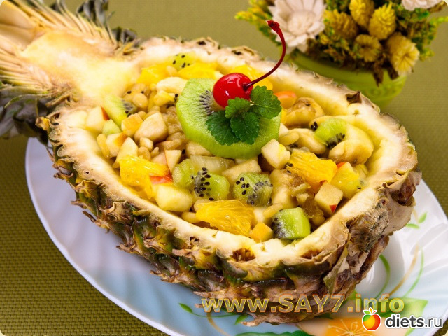 Вместо фруктового салата можно использовать любой салат, в состав которого входит ананас.