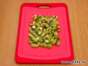 Киви нарезать кубиками.
