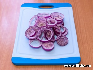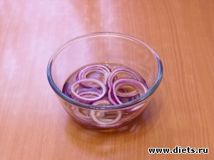 Сделать маринад для лука: смешать воду, уксус, сахар.