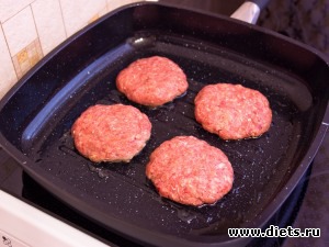 На небольшом количестве растительного масла пожарить котлеты с одной стороны (жарить около 5-7 минут).