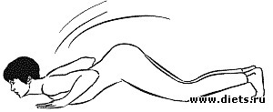 Резко отклониться назад на спину, то есть, сохраняя положение рук, ног и головы, перекатиться назад на спину, и так же резко и быстро верниться в исходное положение, подавшись корпусом и плечами вперед. Движение напоминает кресло-качалку, раскачивающуюся взад-вперед. Дыхание на протяжении всего упражнения произвольное, неглубокое через нос. Внимание сосредотачиваем на позвоночнике, ощущая "проработку" каждого позвонка. Первые 10 дней упражнение выполняйте 5 раз, каждую декаду увеличивайте на 1 раз, пока не достигнете максимума в 10 раз, считая перекатывание назад и возвращение в исходное положение за 1 раз.