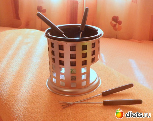 И наконец, замечательный подарок - фондюшница! Это моя мечта! У каждого ведь есть такие вещи, которые очень хочется иметь, но всё не получается купить! Теперь эта вещь есть у меня! Я очень люблю сыр, ведь фондю можно как-то и из сыра делать? Вобщем, теперь в поисках рецептов! И ещё один способ удивить гостей!!!