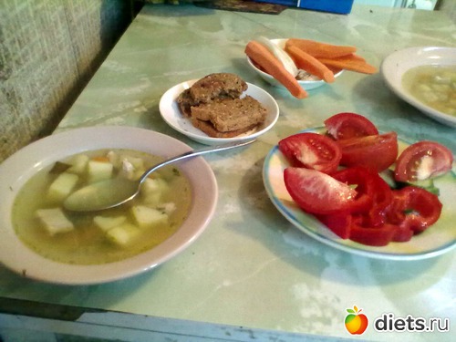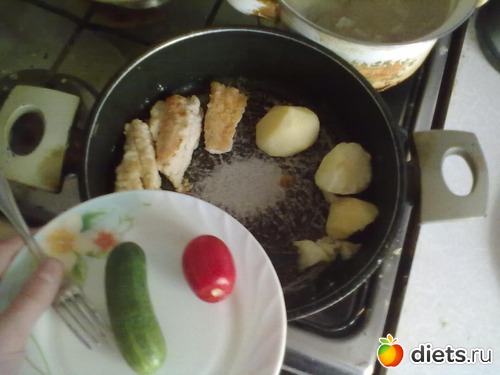 а вот что я кушала на полдник, не думайте что съела всё, я съела овощи, 2 куска рыбки и половинку картошки