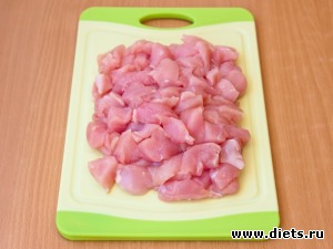 Залить холодной водой, немного посолить и варить до готовности (куриное филе варилось 30 минут, ).