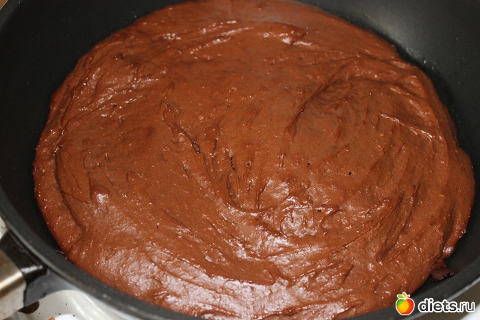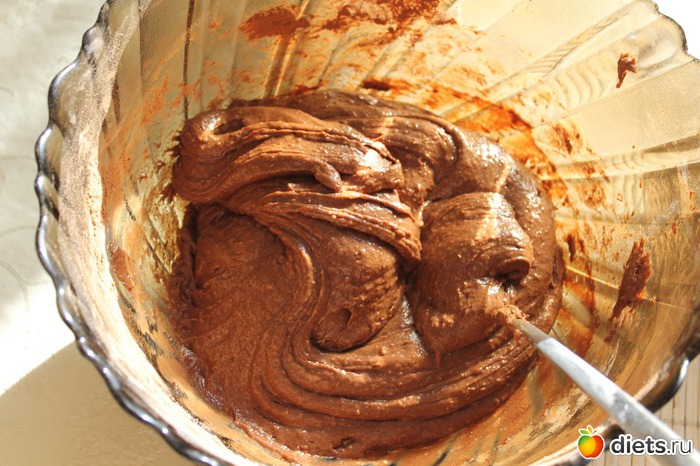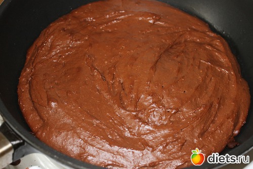 БИСКВИТ Соду погасить уксусом. Муку, яйца, соду и сгущёнку смешать до однородной массы, затем добавить какао, хорошо перемешать.