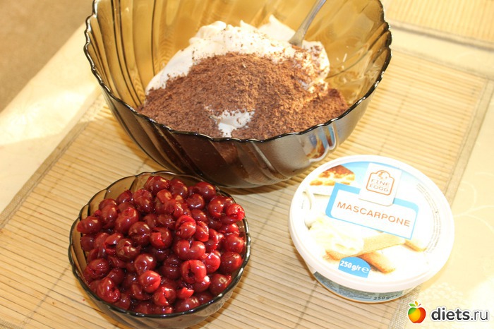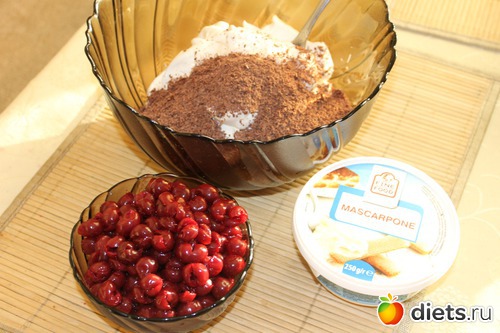 КРЕМ Взбить сливки и сахар до загустения, затем постепенно добавить маскарпоне и тёртый шоколад,