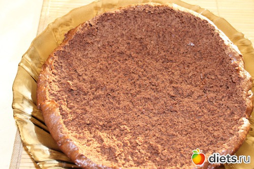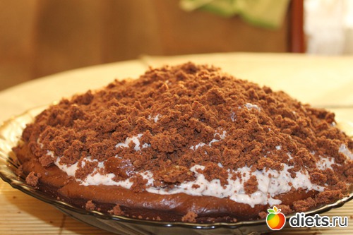 Оставшуюся серединку от торта размять в крошку и ею посыпать сверху торт.