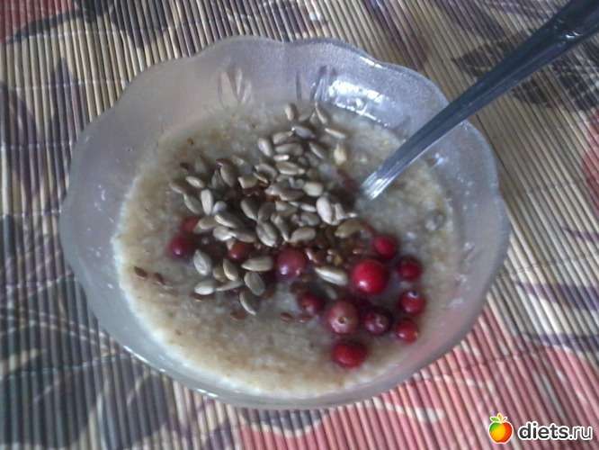 У меня тоже брусника есть, но я её сиропом залила - и отдельно употребляю. А клюквы немного было, решила ничего не делать - так съесть. А более удачного способа употреблять её регулярно, чем с утра в кашку - не придумала. Вот и получился такой рецепт. А пшеничные зародыши придают очень оригинальный вкус....мммм. Об их пользе расписывать не стану, и так много информации.