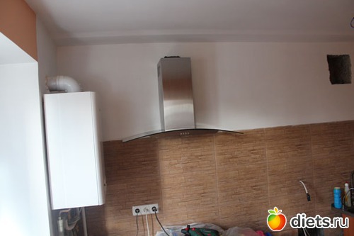 Это мы еще внешний кожух не поставили, нам надо будет гофру купить, а потом уже и внешний кожух поставим. Кстати по агентурным данным вытяжка польская, и на ней (и внутри) везде написано сделано в EU.