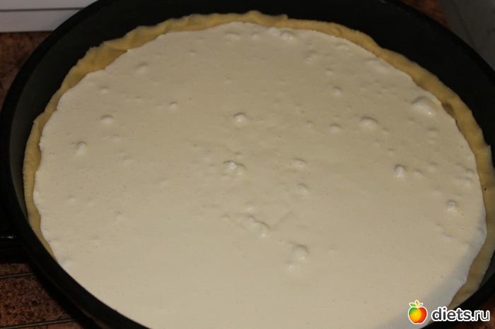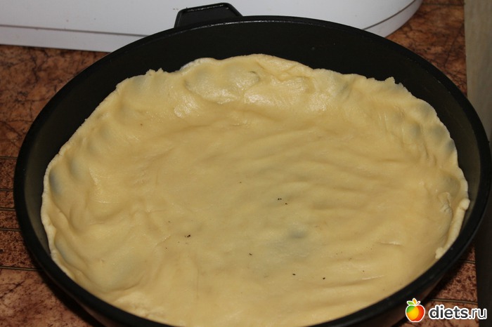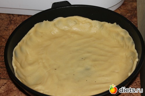Тесто выложить на дно и бортики формы