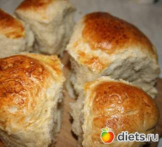 Круглую форму смазать сливочным маслом или маргарином. Разделить тесто на 4-5 кусков, сформовать шары и уложить в форму в виде цветка. Оставить в теплом месте, чтобы тесто поднялось.
