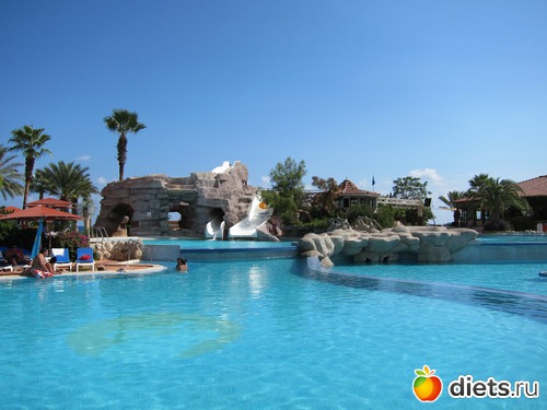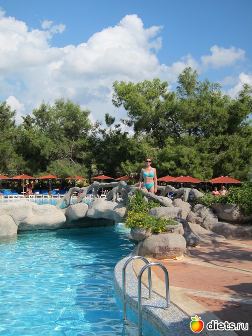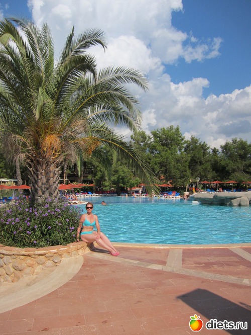 Еще ездили в Анталью, к нашим друзьям, которые отдыхали в отеле Дельфин Империал. Отель крутой, уровня Luxury, открылся только в мае этого года. Все шикарно: атриум высотой в 7 этажей и огромнейшей хрустальной люстрой, обстановка, рестораны...но никакущая территория, небольшая и без зелени, и лежаки только на песке или на пирсе. А я, например, люблю на травке под сосной...