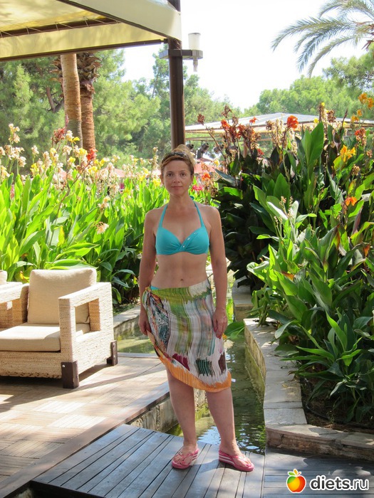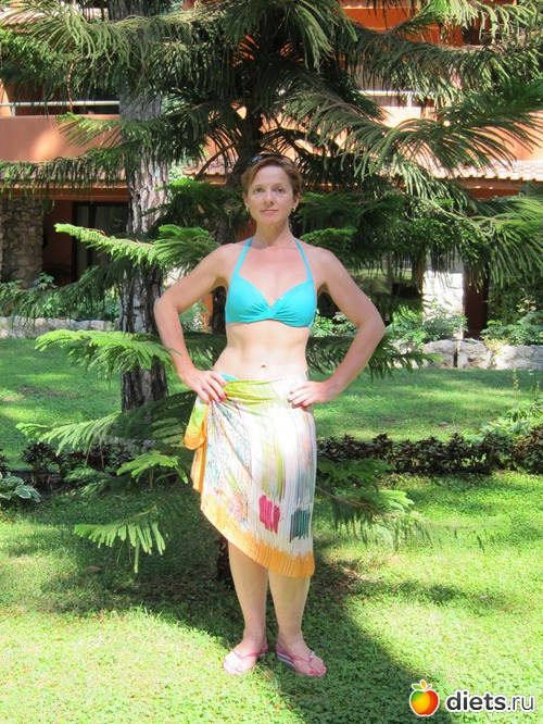 Купалась много, загорала мало, вместо лежания под солнцем около 11 утра, когда муж шел играть в волейбол, я уходила в тренажерный зал, благо он расположен практически на пляже. Делала через день верх-низ, после силовых полчаса или в горку на дорожке, или на эллипсе. Примерно вот так: