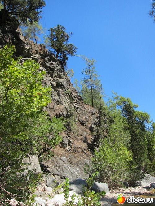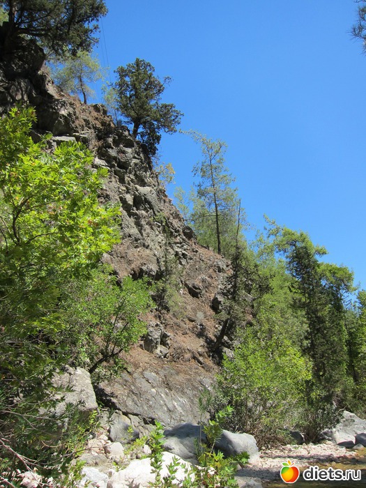 Еще с этими же приятелями съездили на горную речку, опять же, в незатронутое туристами-рафтингами место. Спускаться пришлось с довольно крутого обрыва, но красота места того стоила: