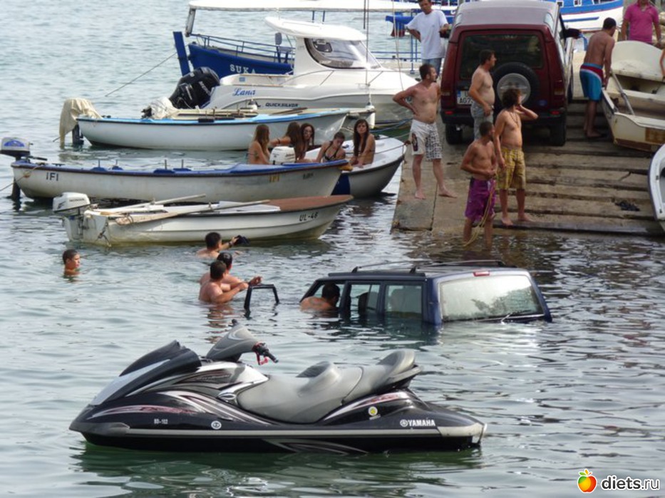 А это Черногорский город Ульцынь, почти на границе с Албанией. Мужики хотели подцепить скутер и утопили джип