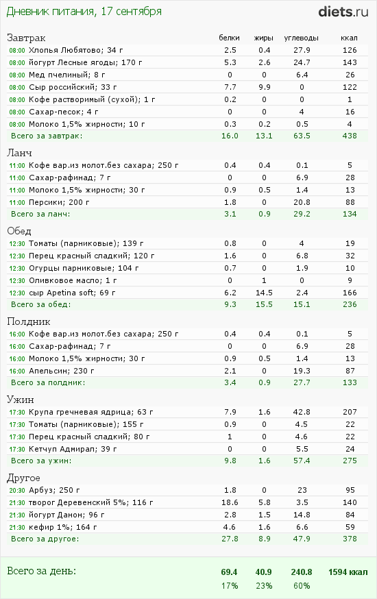 Всё-таки правильное домашнее питание это лучше всего! Так что мы закупились продуктами и я снова готовлю себе. Дробное питание позволяет не голодать. Вот моё вчерашнее питание, получилось практически отличным: