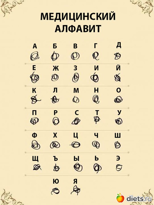 А мне казалось, что медицинский алфавит состоит из букв "и" "ш" "л" "м" и росчерки вверх и вниз без всякой схемы