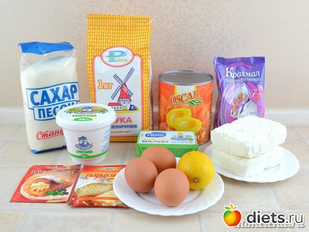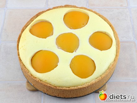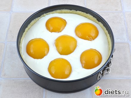 Творожный пирог с персиками - великолепное блюдо для любителей творога.