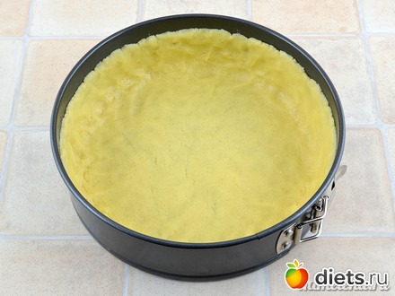 Растянуть тесто по дну формы, а также сформировать высокие бортики, примерно 6-7 см высотой.