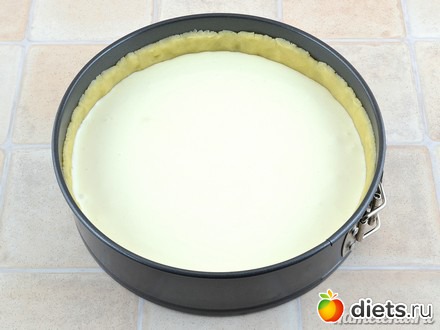 Переложить тесто в форму (у меня форма диаметром 22 см).