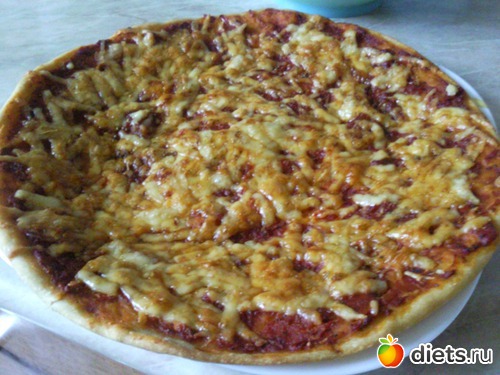 Итого на 100г пиццы - 183 ккал, Б-7,2, Ж-8,3, У-20,3.