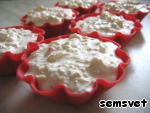 Всё перемешать вилкой. Не пугайтесь, если получается довольно жидко. Разложить по формочкам, пригодным для микроволновки. Я пользуюсь силиконовыми, но можно использовать пластмассовые, стеклянные и керамические. Можно даже взять обычные толстостенные пиалы или чашки. Суфле при выпечке не поднимается, можно заполнять формочки до самого верха.