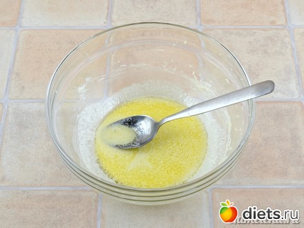 Сливочное масло растопить в микроволновке, добавить сахар, ванильный сахар, перемешать и хорошо растереть.