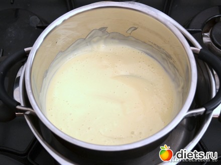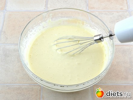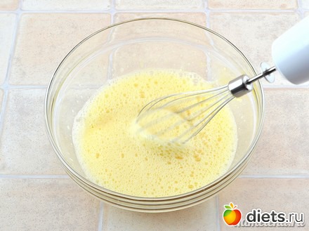 Яйца взбить с сахаром в пышную пену в течение 3-4 минут.