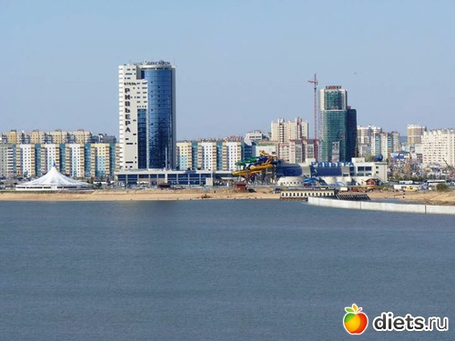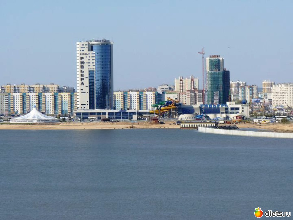 Вид на отель Ривьера с берега реки Казанки
