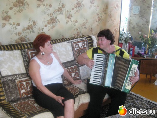 В отличии от меня она стройняшка- 76 кг и 64 года. Конечно на фото сидя всегда получаются полноватыми, но это я не себя оправдываю, а сестричку "реабилитирую" : она действительно стройняшка! Смотрите сами... Это мы с ней песни спiваем