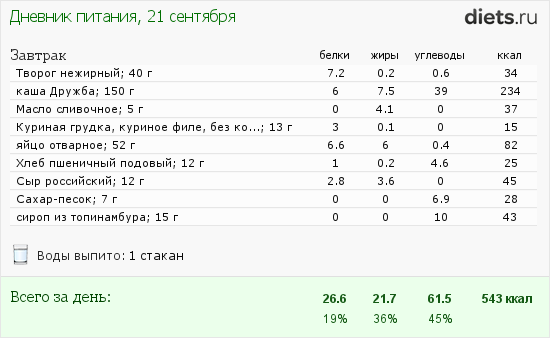 Вот сейчас скопировала рацион завтрака и увидела синим шрифтом