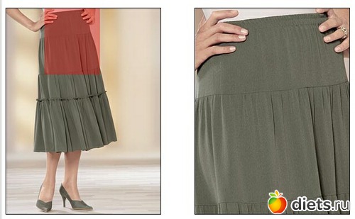 Еще мне понравилась кофточка в жутких розочках. И оливковая юбка ярусами.