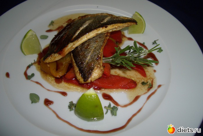 Дорадо чистите от кости, подготавливаете филе. Перец запекаете в фольге 25 минут, потом достаете и в пакетик полиэтиленовый кладете на 30 мин. что бы кожу легко можно было снять. Готовое филе рыбы солим, перчим и жарим с добавлением растительного масла по 1.5 мин. с каждой стороны, на среднем огне. Накрываем крышкой, снимаем с огня. Перец зачистили от плодоножки, семян и кожи... Читать полностью