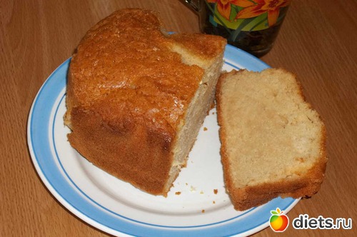 350 г размягченого маргарина смешать с 350 г сахара. Добавить 6 яиц и 350 г муки с 3 ч.л. разрыхлителя. Влить 6 ст.л. молока. В форму и на 20 мин. в разогретую духовку.