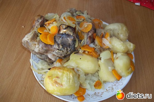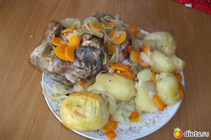 Муж ел рульку с овощами, я только овощи. Но все равно совсем не диетично получилось