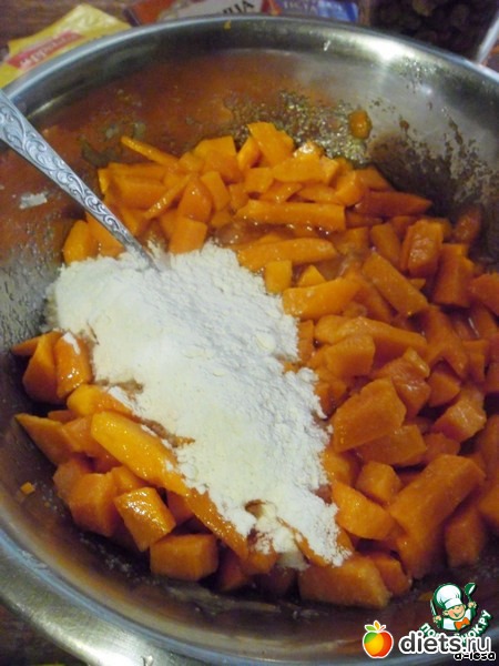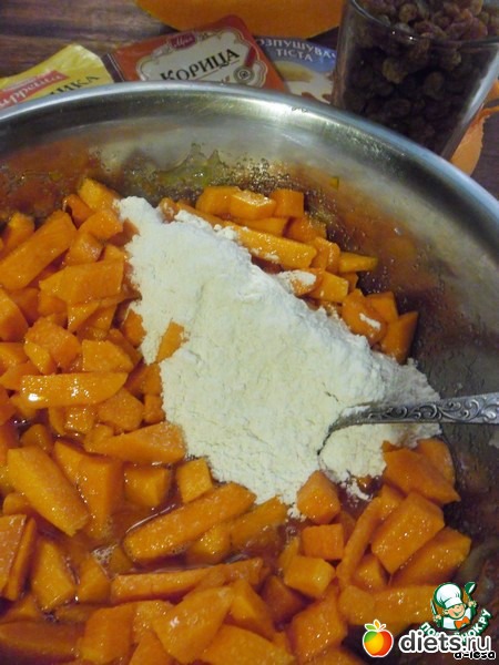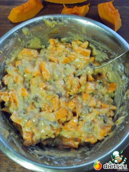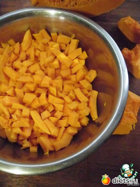 Тыкву очистить от кожуры и семян, нарезать кубиками размером примерно 1*1 см.