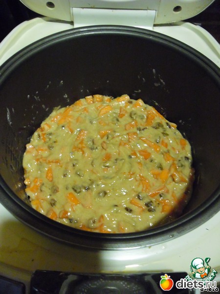 Форму смазать и слегка присыпать мукой, вылить тесто и запекать в мультиварке 1 час 10 мин. В духовке при температуре 175-180 град. - 1 час (проверять готовность деревянной палочкой).