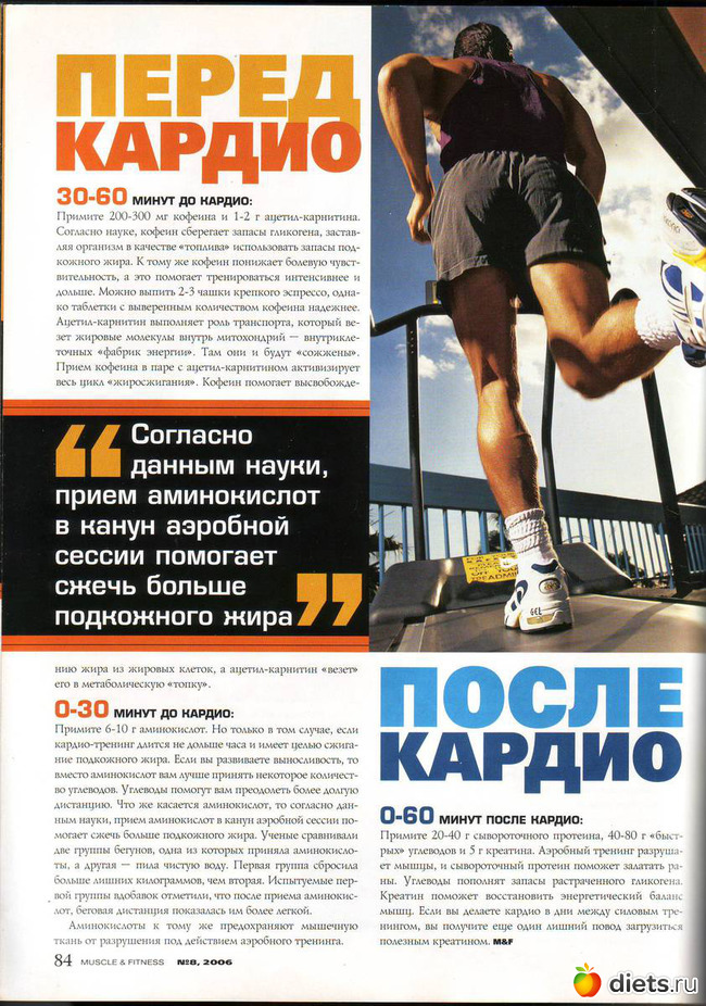 От себя добавлю - не стоит слишком усердствовать с кофеином и другими стимуляторами - от них вазоконстрикция возникает (см. Википедию). А в идеале нужна вазодилатация. Проще говоря - кофеин сужает сосуды, что не есть гуд во время интенсивных тренировок.