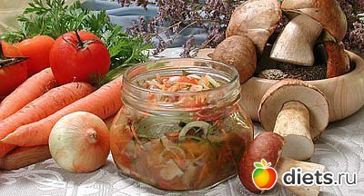 Грибы (лучше грузди) крупно нарезают и варят в соленой воде, охлаждают. Помидоры нарезают дольками, репчатый лук - кольцами, морковь натирают на терке... Читать полностью
