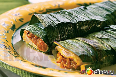 4. Разогреть духовку до 180ºС. Положить 4 листа порея на разделочную доску так, чтобы они слегка заходили один на другой. Уложить на них филе пикши, присыпать мелко раскрошенным лавровым листом. Свернуть в рулет. Таким же образом завернуть второй кусок филе. Сбрызнуть рулеты оставшимся растительным маслом, уложить на противень и запекать в духовке 30 мин.