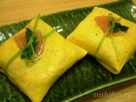 перца, измельченного лука, кресс-салата и нарезанного кубиками лосося.