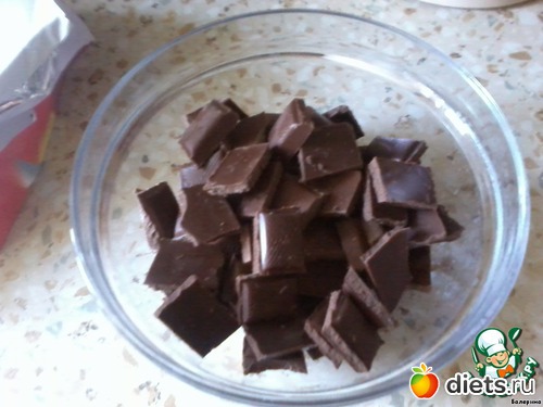 Шоколад топим в микроволновке или на водяной бане. У меня было 2 плитки десертного и 1 молочного шоколада.