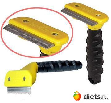 ...вы бы видели! Фурминатор, в отличие от пуходерки, удаляет отмерший подшерсток и тем самым, значительно уменьшает линьку. Причем он не режет шерсть, как может показаться на первый взгляд. Правда он не слишком дешево стоит, но зато проблема лишней шерсти в доме отпадет раз и навсегда. Всем советую!