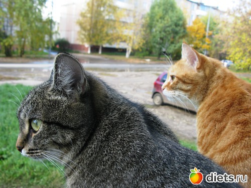 Любопытные кошки тут же прискакали с балкона поглазеть на грохот. Но, т.к. они не ожидали, что на их пути окажется сопливое нечто, обе с грохотом улетели в скользкую жижу, размазывая ее до прихожей