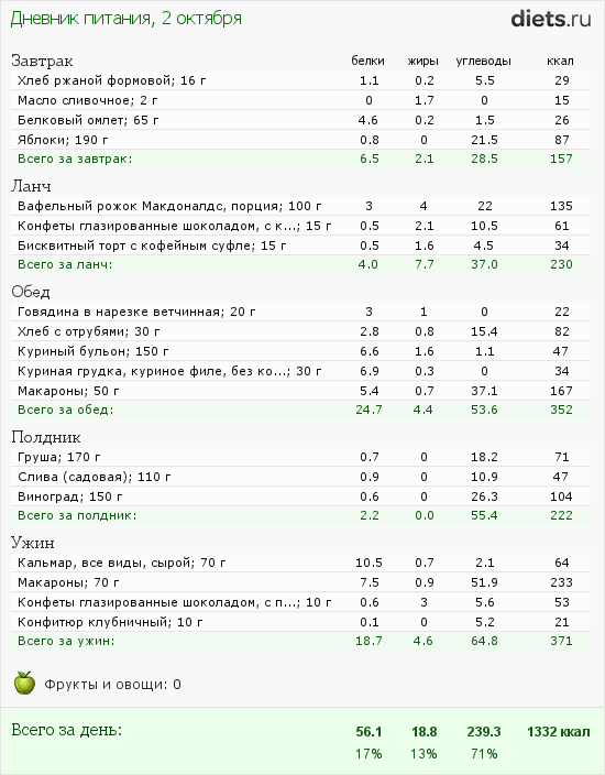 Сегодня ещё ничего (хотя пришлось есть незапланированную шоколадку при головной боли). А вчера сама себе всё испортила - покурили на ночь глядя кальян, мне тааак плохо было. тошнило жутко. Отравилась, в общем. В итоге Женя спас меня ягодным лукошком и стаканом молочка).