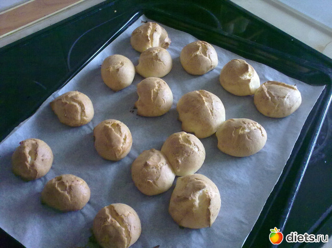 Противень устилаем пергаментной бумагой. Чайной ложкой на бумагу выкладываем типа шарики (можно воспользоваться и кондитерским шприцом - будет красивее