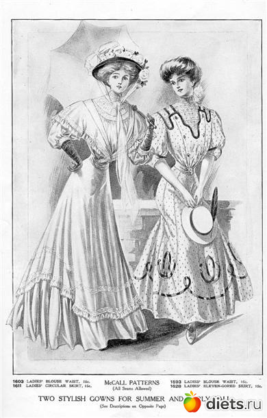 Конечно, большинство из наших прабабушек или прапрабабушек не могло позволить себе такие наряды, но уж наблюдать на улицах городов подобных изящных и женственных красавиц могли все.