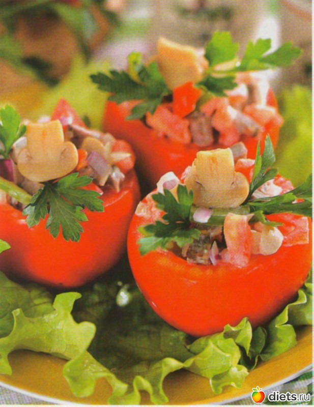 Помидоры вымыть, вынуть мякоть. Мякоть смешать с майонезом, тертым сыром, измельченным чесноком