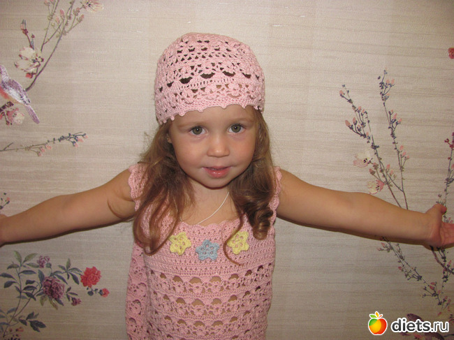 Платье и шапочка для любимой девочки! Кажется ей понравилось!