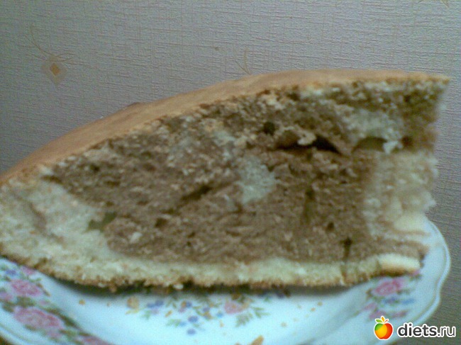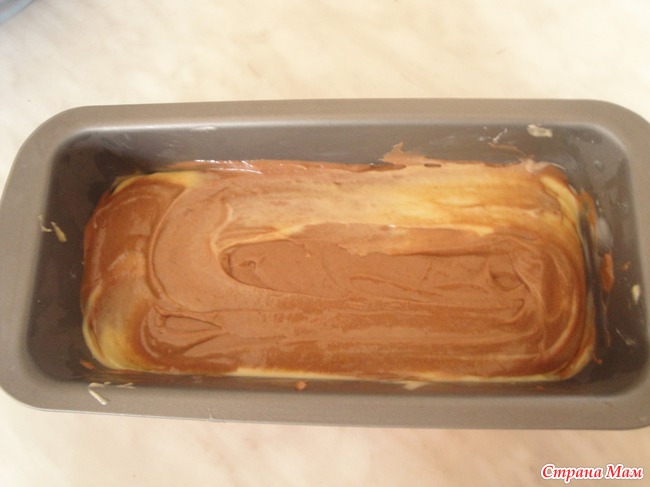 из меньшей я сделала следующее: на дно формы половину теста, затем во вторую половину добавила какао, тщательно вымешала и вылила сверху)
